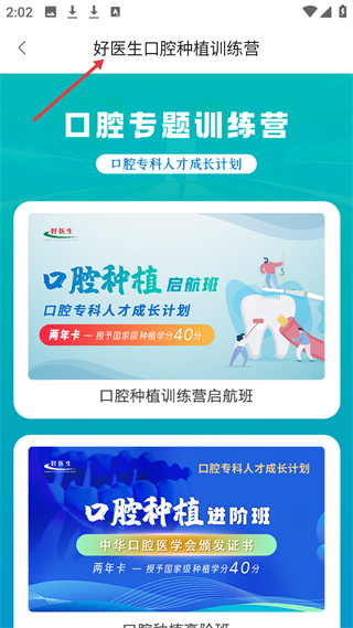 4、好醫生口腔種植訓練營,屬于口腔專題訓練營,有啟航班、進階班等,助力口腔??迫瞬懦砷L,可獲國家級學分。