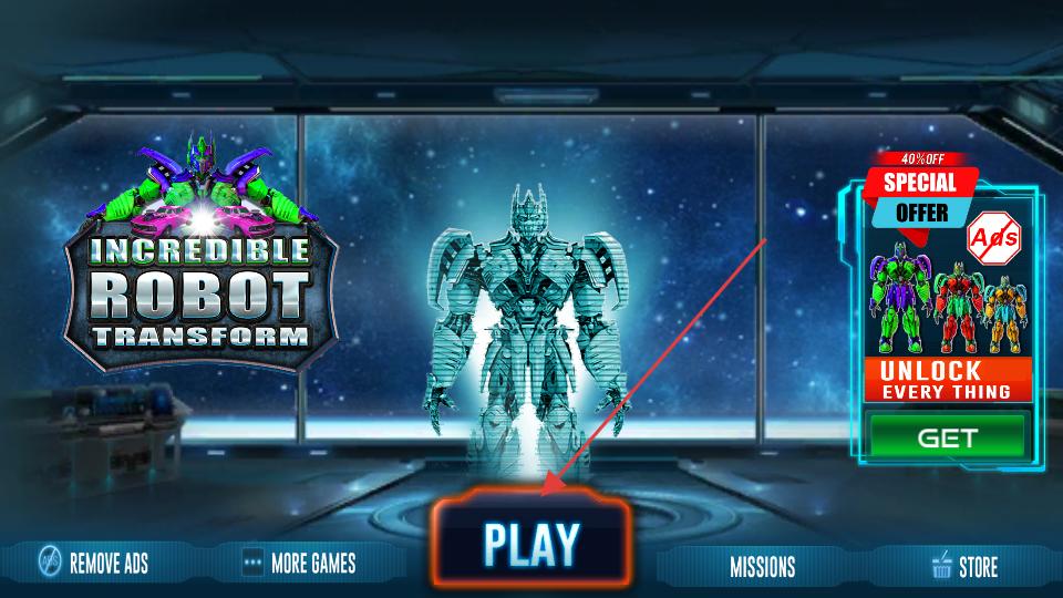 3、點擊PLAY按鈕,消滅指定數量敵人,完成任務目標,推進游戲進程,可繼續挑戰后續關卡,解鎖更多機器人和游戲內容。