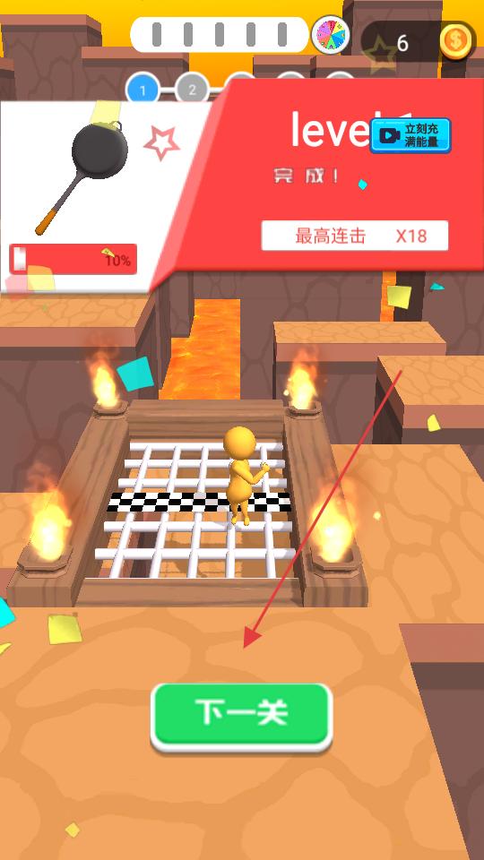 3、成功到達目標區域后,界面顯示關卡完成,點擊下一關按鈕,進入下一個關卡,準備迎接新的熔巖區域冒險挑戰。