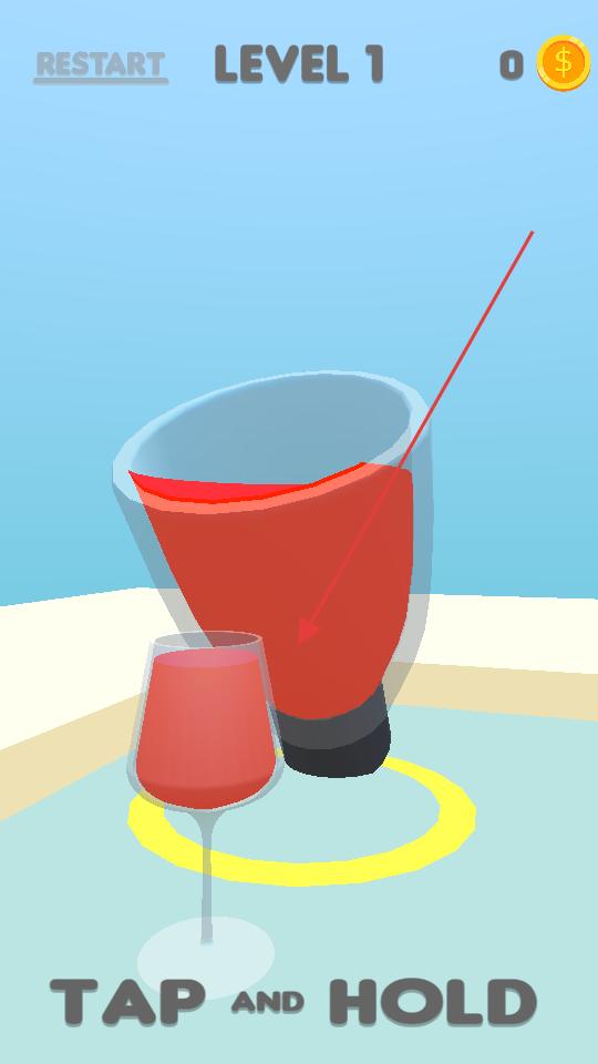 4、持續點擊并按住屏幕,直至榨汁完成,容器內出現紅色果汁,隨后將果汁倒入旁邊的酒杯中,完成Level1的果汁制作,順利通關。