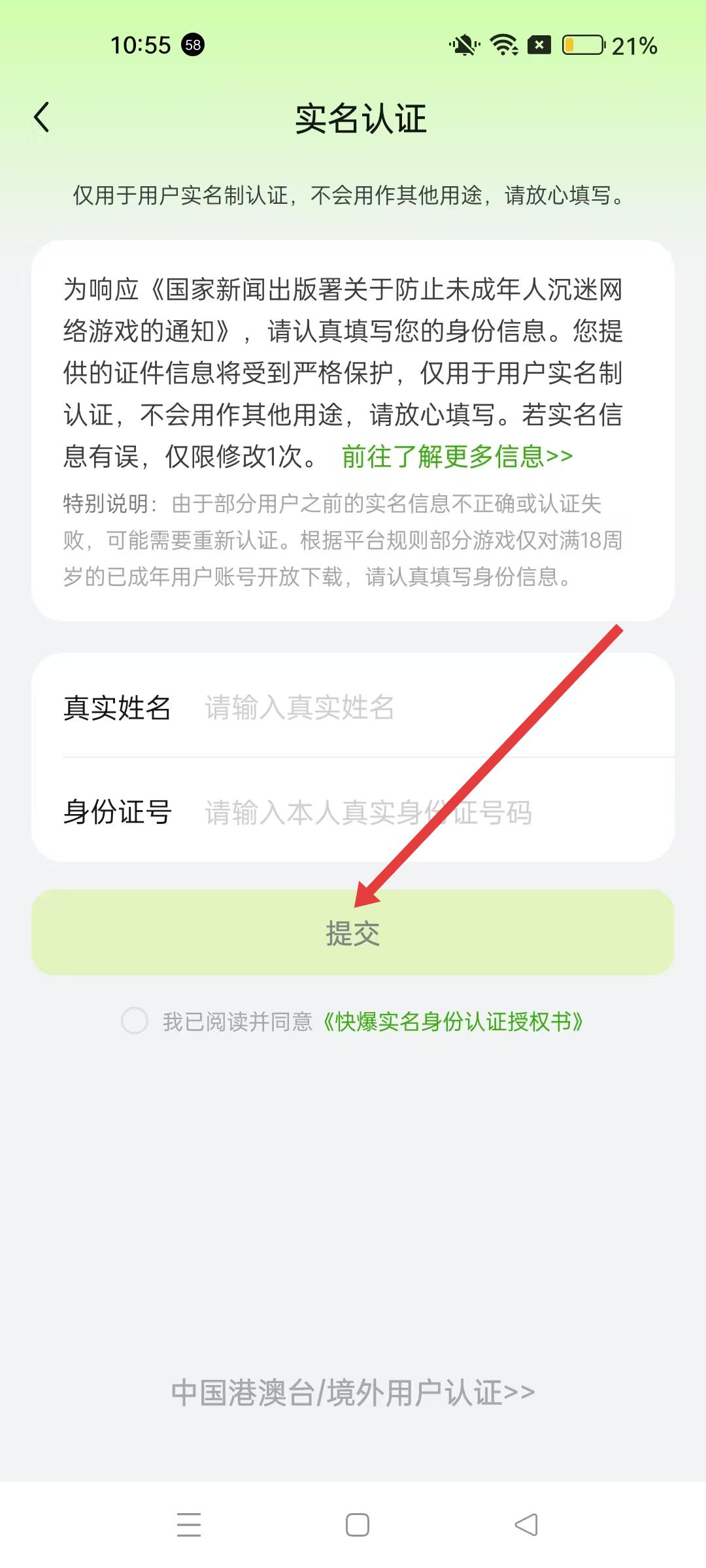 4、登錄后需進行實名認證,輸入真實姓名和身份證號,勾選同意授權書,點擊提交,完成實名認證流程。