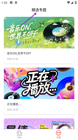 3、專題頁展示精選音樂專題,含主題海報與發布時間,是按專題分類瀏覽鈴聲的內容板塊。
