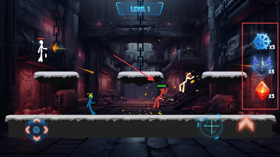 3、戰斗過程中會遇到多個火柴人敵人,持續操控自己的火柴人移動、攻擊,同時注意躲避敵人的攻擊,保障自身安全,逐步消滅敵人。