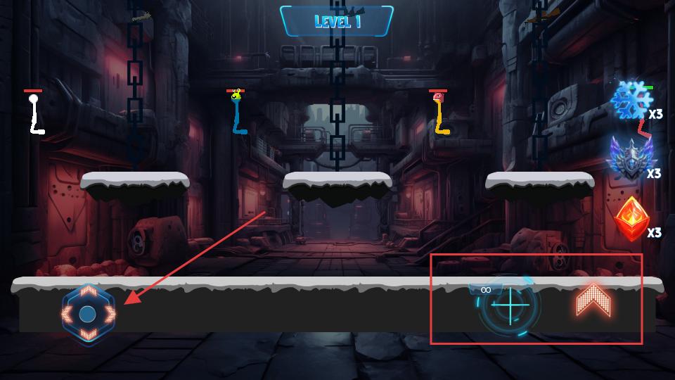 2、在戰斗關卡中利用右側的瞄準和前進等按鈕,操控火柴人移動,瞄準敵人,發起攻擊,與敵人展開戰斗,爭取擊敗對手。