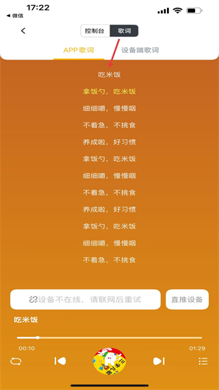 4、進入音頻播放頁面,能看到對應內容的歌詞,還有播放控制相關按鈕,可播放音頻同時查看歌詞,輔助進行學習和內容理解。