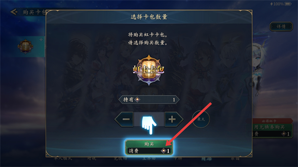 4、可購買卡包,選擇卡包數量后點擊購買,獲取新卡牌,擴充卡牌陣容,提升對戰能力。
