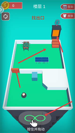 1、進入樓層1,需要找出口,按住并拖動屏幕,操控角色在樓層內移動,朝著出口方向前進,探索樓層布局。