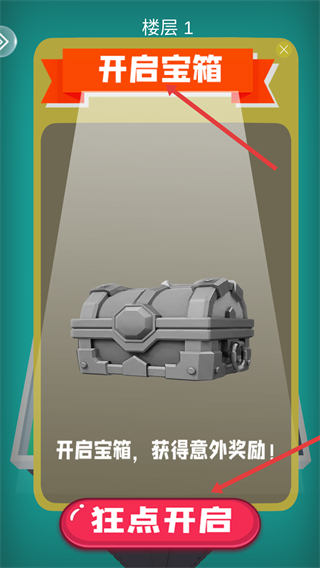 2、會遇到寶箱,出現開啟寶箱提示,狂點開啟,打開寶箱能獲得意外獎勵,為后續冒險提供助力。