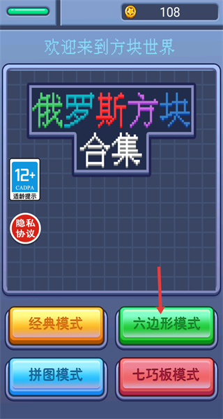 1、游戲主界面有多種模式選擇六邊形模式,進入對應游戲場景開啟六邊形方塊的拼接挑戰。