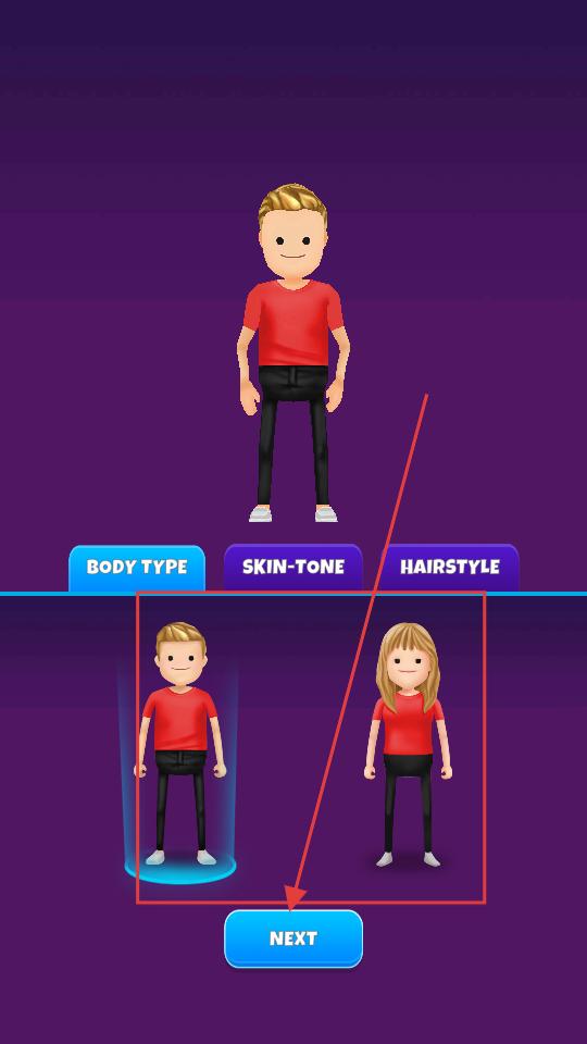 3、到發型設置環節從多個發型選項里選擇合適的發型,讓角色外觀更具個性,完成發型選擇后,點擊NEXT按鈕,進入關卡選擇界面。