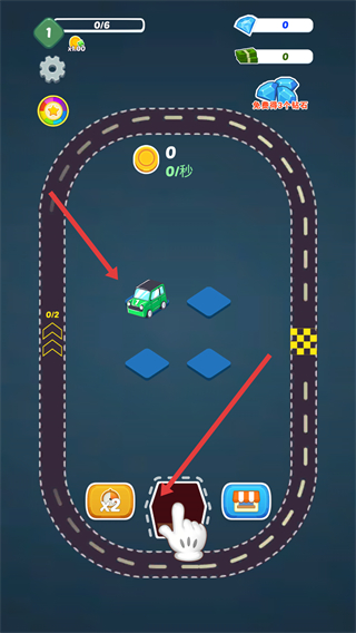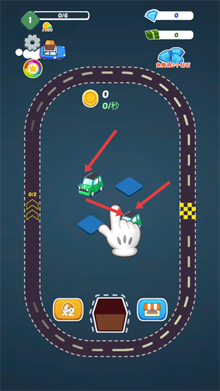 1、先看到初始的低等級汽車,點擊空白位置可放置汽車,準備通過相同汽車合成,獲取更高等級的車型。