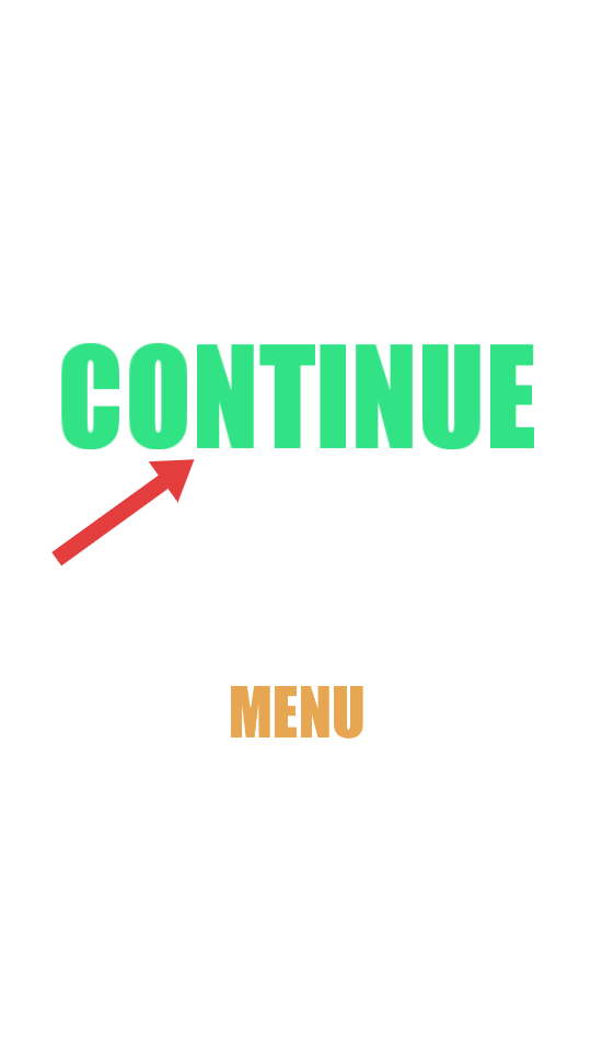 2、若有游戲進度,在CONTINUE界面,依據紅色箭頭方向,點擊CONTINUE,繼續之前的操作流程。
