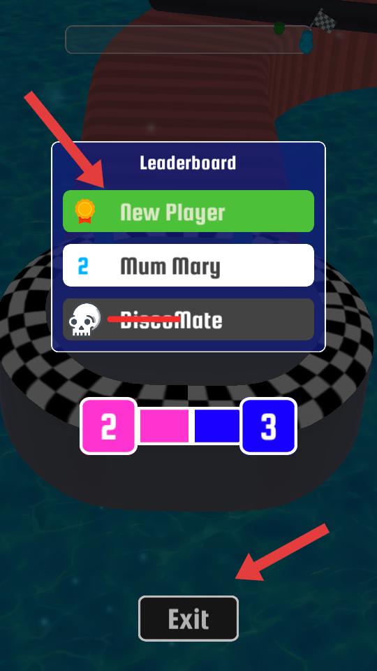4、游戲結束后,再次查看排行榜,確認【New Player】名次變化,點擊【Exit】按鈕,退出排行榜界面。