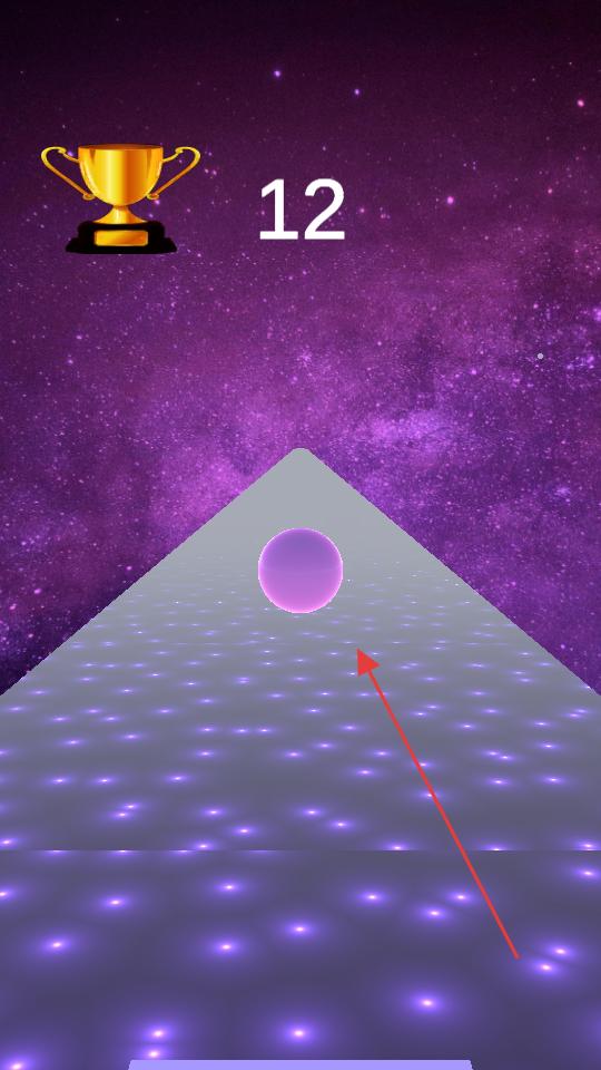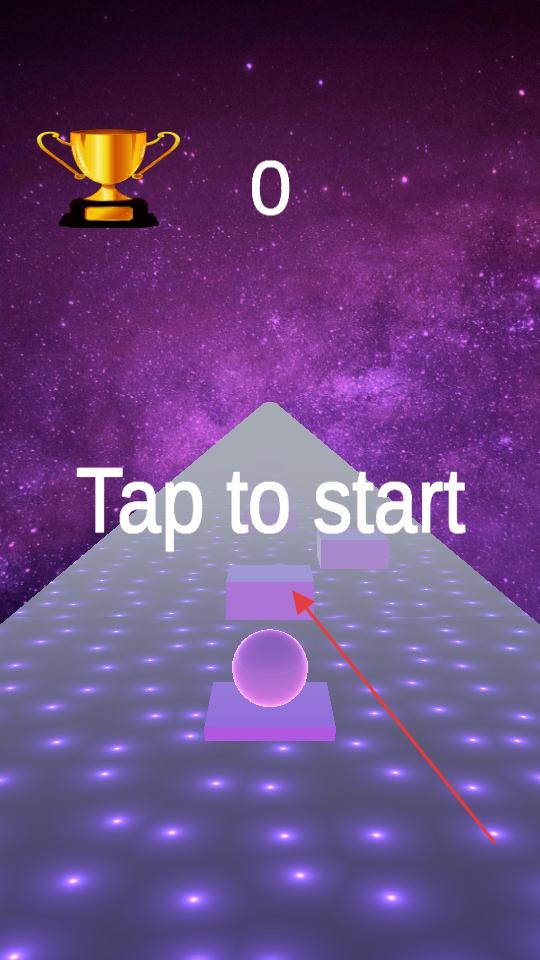 1、打開游戲看到Taptostart提示,點擊屏幕,讓小球開始在星空背景的賽道上移動,此時準備操控小球,開啟游戲進程。