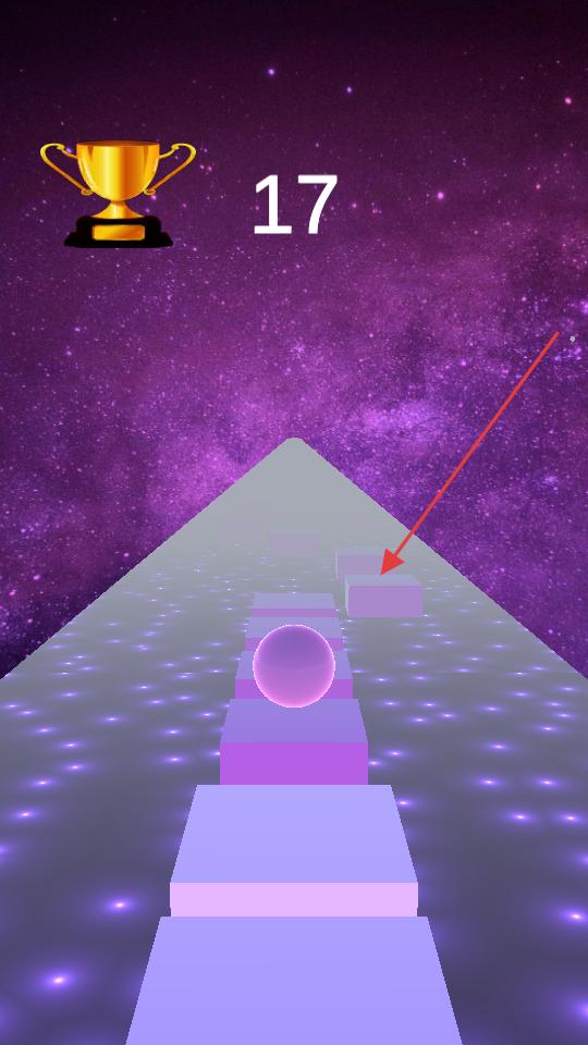 2、小球移動后通過點擊或滑動屏幕,操控小球在賽道的方塊上跳躍持續前進,同時留意分數的變化,爭取獲得高分。