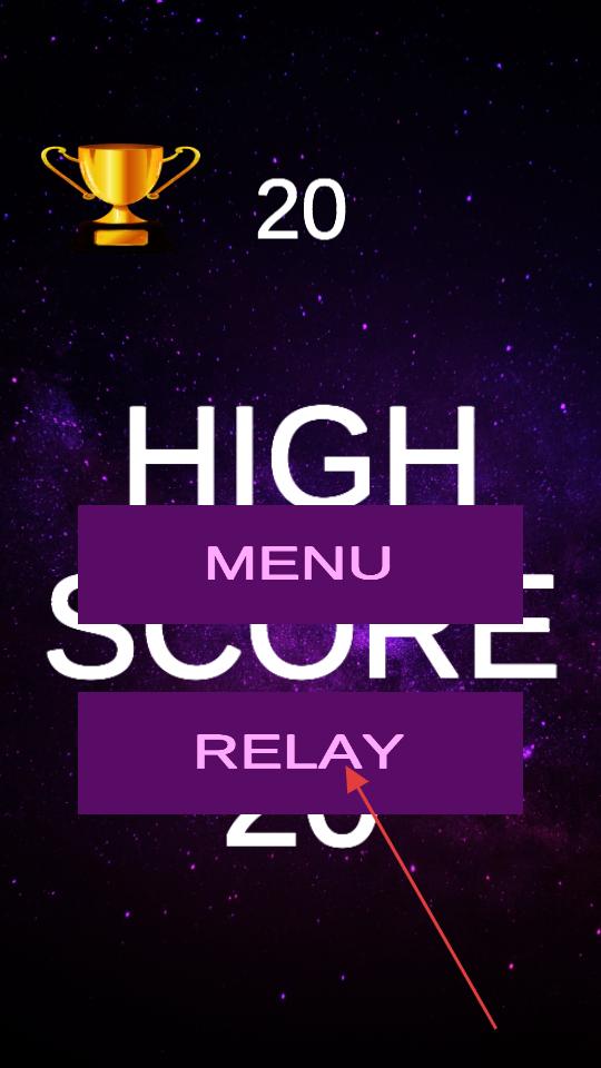 4、若小球掉落游戲結束會出現MENU和RELAY等選項,點擊RELAY,重新開始游戲,再次操控小球跳躍,挑戰更高分數。