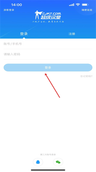 1、登錄頁支持賬號手機號密碼登錄,可游客或第三方QQ、微信登錄,忘記密碼可找回,界面簡潔易操作。