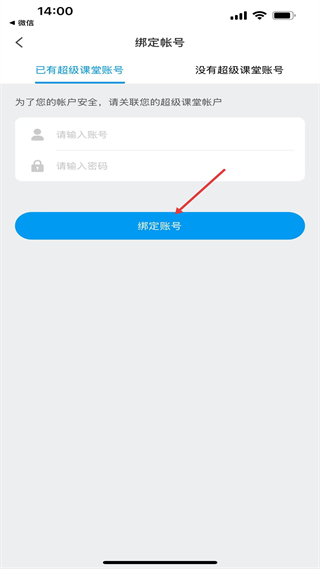 3、綁定賬號頁,分已有和沒有超級課堂賬號兩種情況,已有賬號需輸入賬號密碼綁定,保障賬戶安全,便于關聯學習數據。
