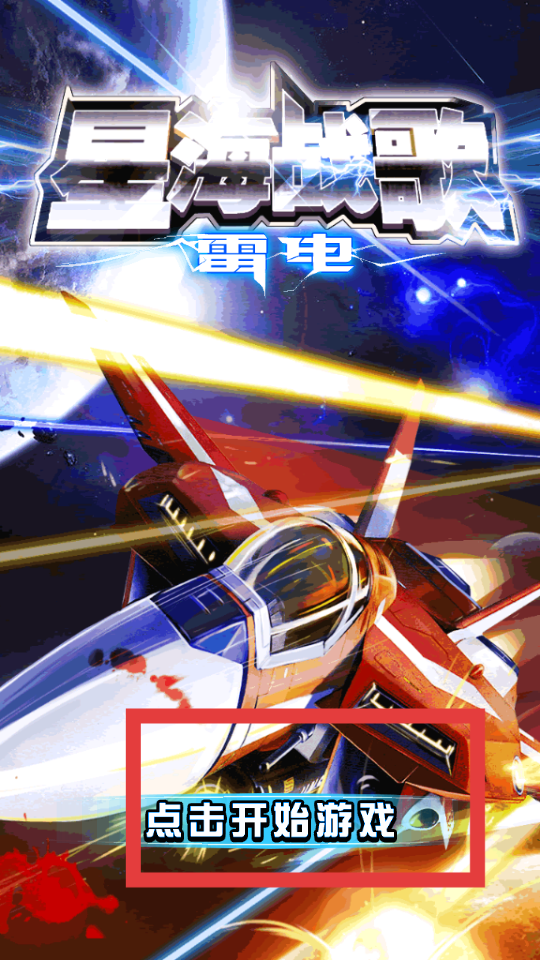1、玩家下載游戲之后,然后玩家點擊進入在游戲主界面中點擊紅框內的點擊開始游戲按鈕,即可進入雷電星海戰歌的戰斗關卡。