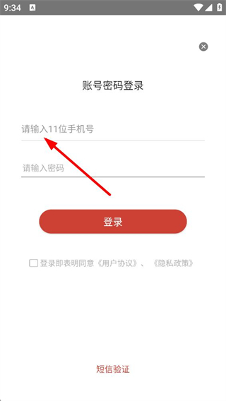 3、登錄頁面,可選擇賬號密碼登錄,輸入11位手機號和密碼,閱讀并同意相關協議后點擊登錄,也可選擇短信驗證登錄。