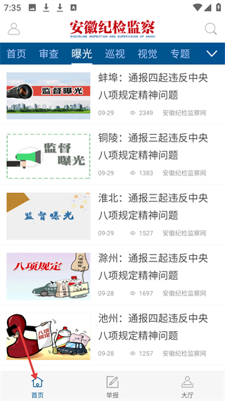 1、首頁,曝光欄目發布蚌埠、銅陵、淮北、滁州、池州等地違反中央八項規定精神問題通報,展現監督曝光工作動態。