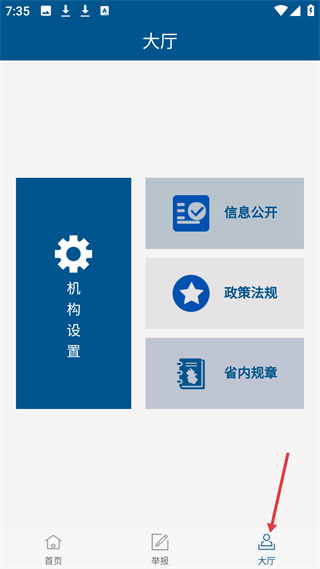3、大廳板塊,有機構設置、信息公開、政策法規、省內規章功能,為用戶提供紀檢監察相關服務與信息。