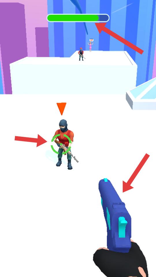 3、游戲中瞄準敵人,點擊射擊,上方有進度條顯示狀態,消滅敵人推進游戲,注意躲避敵人攻擊,保證自身安全。