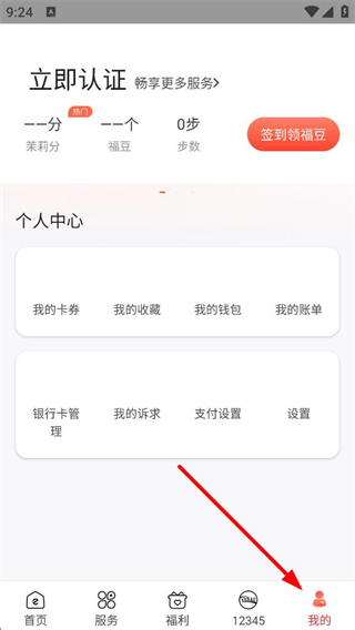4、進入個人中心界面,可看到茉莉分、福豆、步數等信息,有簽到領福豆功能和應用設置等操作。