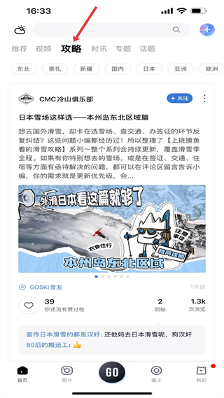 1、攻略,展示不同區域滑雪攻略內容,以日本雪場為例提供選雪場等實用信息,助力滑雪者高效規劃出行行程。