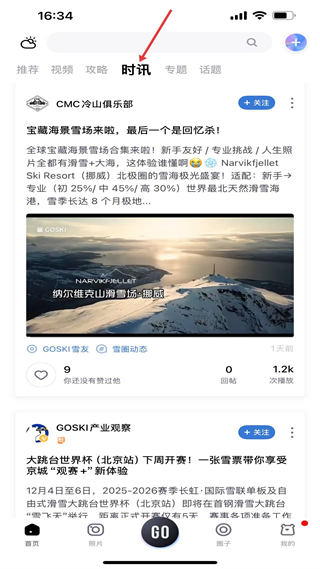 2、時訊,呈現滑雪相關實時資訊,涵蓋雪場推薦及賽事信息等內容,幫助滑雪愛好者及時獲取行業最新動態。