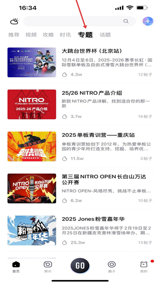 3、專題,整合滑雪賽事等專題內容,按主題系統聚合相關信息,便于用戶深入了解特定滑雪相關領域。