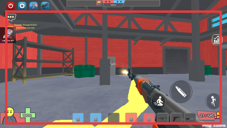 4、進入游戲場景后,借助屏幕上的各類操作按鈕,去控制角色移動、進行射擊,在廠房這類場景里和對手展開激烈對戰努力爭取勝利。