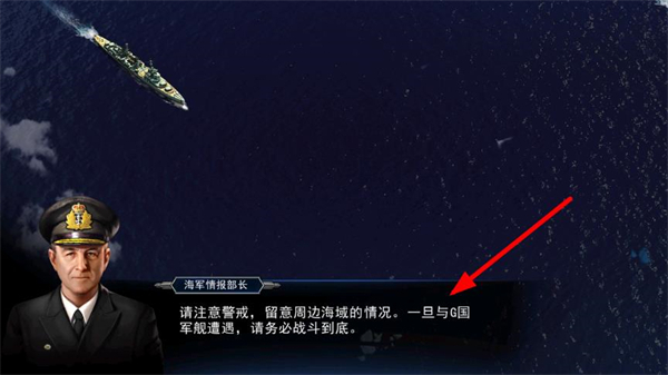 1、會有海軍情報部長提示注意警戒周邊海域,與G國軍艦遭遇時需戰斗到底,開啟海戰進程。