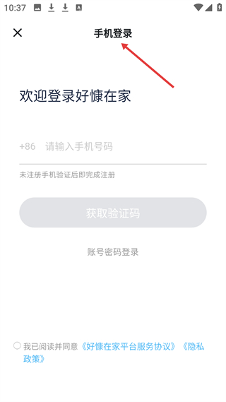 1、手機登錄頁需輸手機號獲驗證碼登錄,未注冊手機驗證即注冊,需勾選同意平臺服務協議和隱私政策。