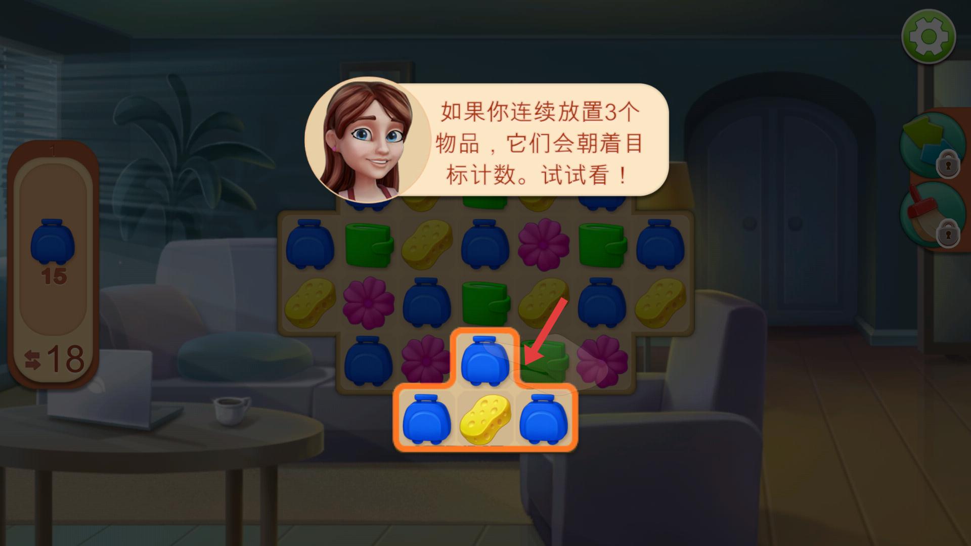 3、若連續放置3個物品,它們會朝著目標計數,所以在放置物品時,可嘗試連續放置3個,利用此規則來推進計數,助力關卡完成。