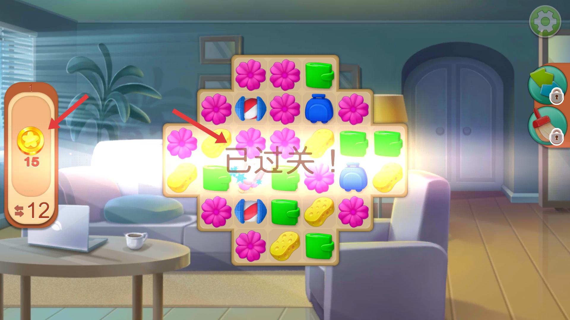 4、關卡成功通過后,會獲得金幣獎勵,繼續挑戰后續關卡,重復之前的策略,收集物品、利用連續放置規則,爭取更多通關獎勵。