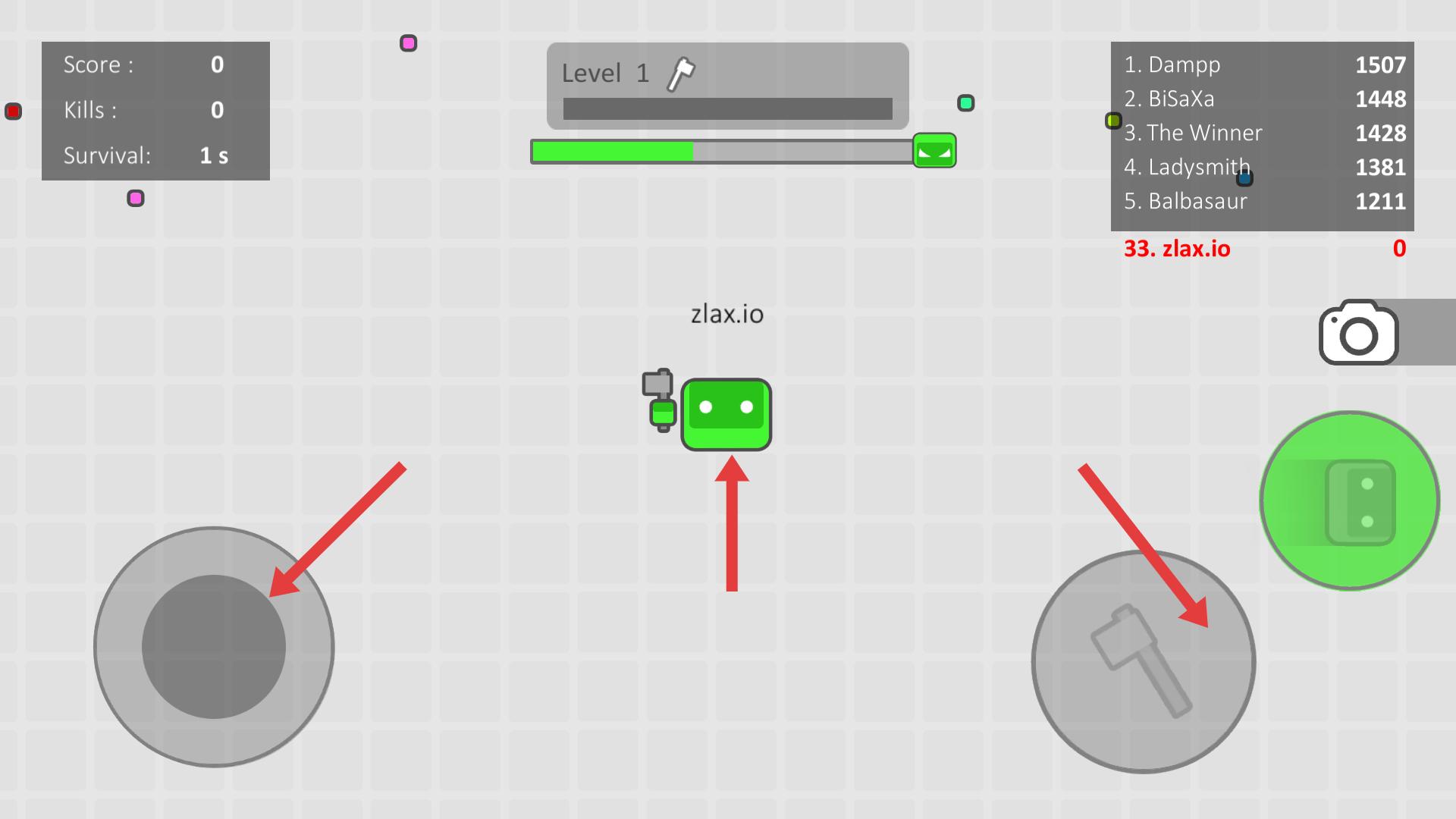 1、基礎移動控制:使用虛擬搖桿操控方塊角色八向移動,長按屏幕觸發加速沖刺消耗體力條,合理利用障礙物躲避飛行道具攻擊。