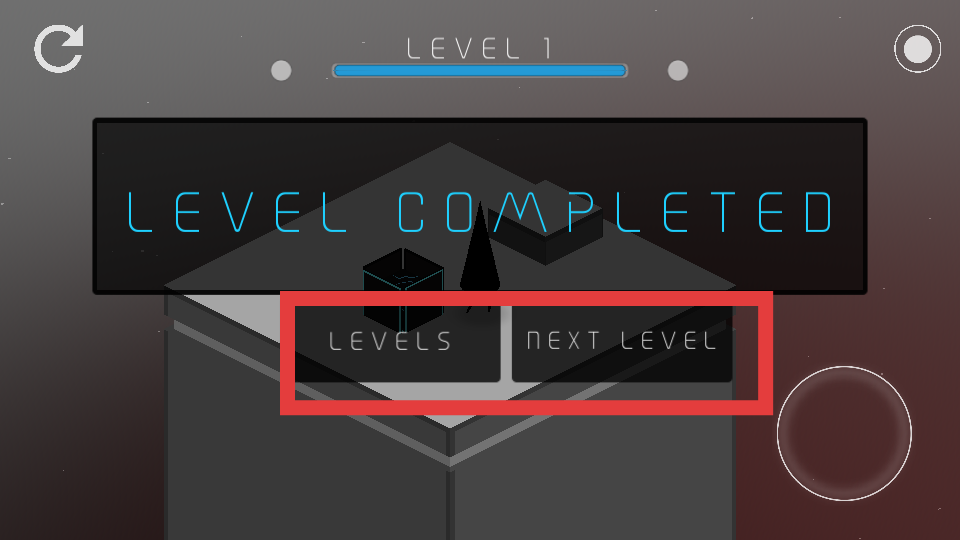 4、玩家成功將黑色方塊移動到指定的位置,玩家游戲即成功然后點擊圖標標記NEXT LEVEL能進入下一關。