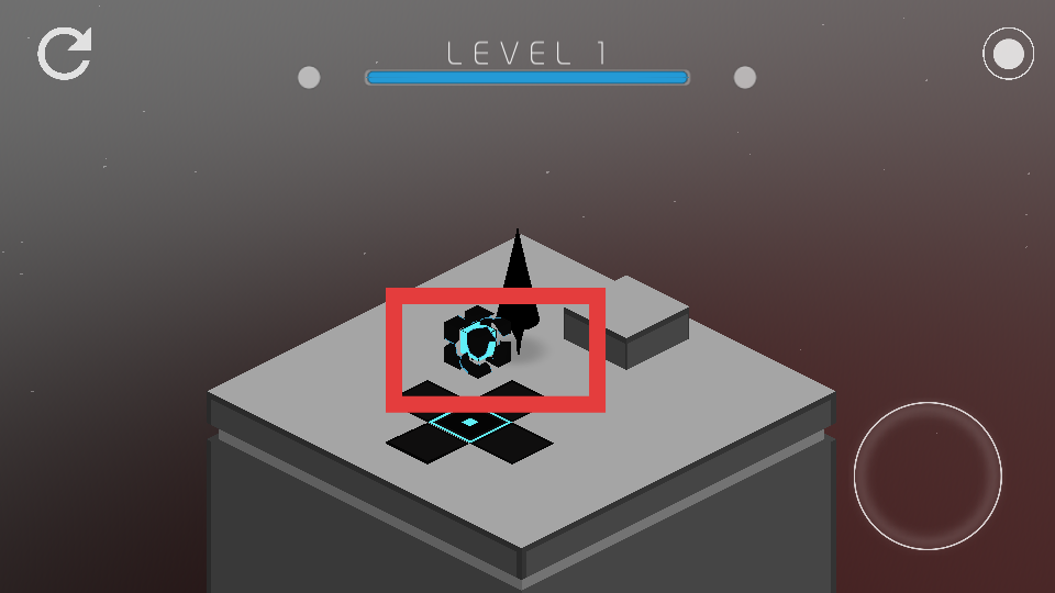 3、進入關卡場景里有不同幾何造型的空間元素通過拖動移動等操作,讓黑色方塊抵達箭頭在的位置。