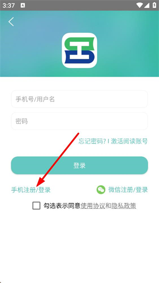 3、進入登錄界面,可輸入手機號、用戶名與密碼登錄,也能選擇手機注冊、登錄或微信注冊、登錄方式,需勾選協議來完成操作。