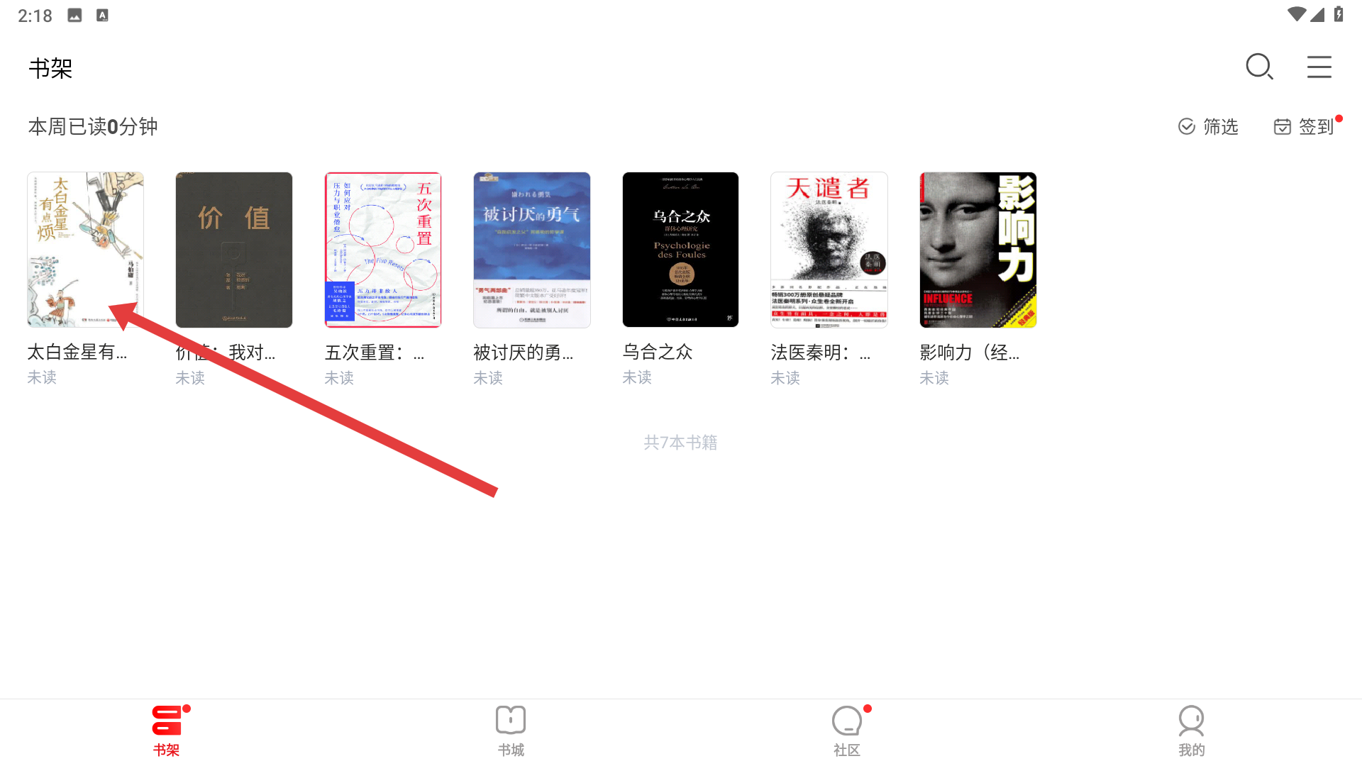 4、添加書籍后書架會顯示已加入的書籍,如太白金星有點煩、價值等,可隨時點擊書籍開始閱讀。