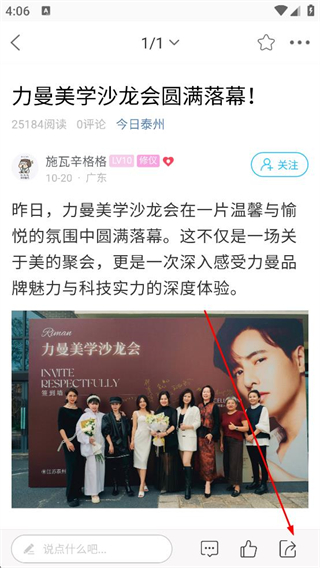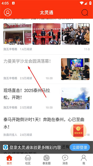 1、打開太靈通軟件進入首頁,瀏覽各類資訊內容,選擇力曼美學沙龍會圓滿落幕的資訊,點擊進入詳情頁面。