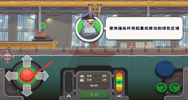 2、使用操縱桿控制起重機移動,將其移到綠色區域,通過操縱桿的方向操作,精準把起重機送到指定位置,為后續操作做準備。