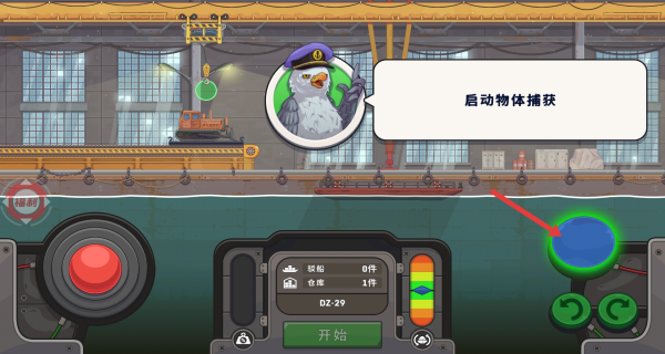 3、起重機移動到位后,點擊藍色按鈕啟動物體捕獲,完成捕獲操作,這一步是獲取物品的關鍵環節,助力游戲進程推進。