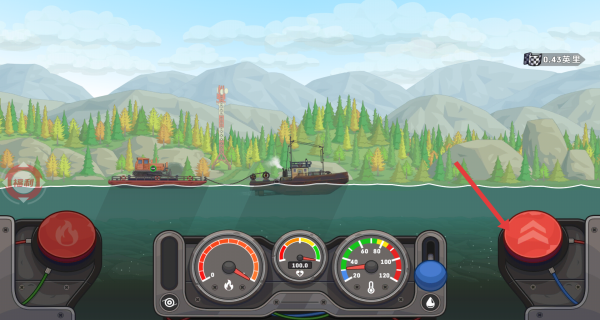 4、在航行界面,點擊紅色前進按鈕,控制船只前行,朝著目標地點進發,同時留意儀表盤數據,確保航行順利。