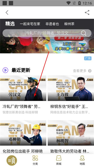 2、在演視頻頁面選擇精選分類下的內容,找到最近更新里的視頻條目,點擊對應的視頻封面,進入該視頻的詳情頁面準備觀看。