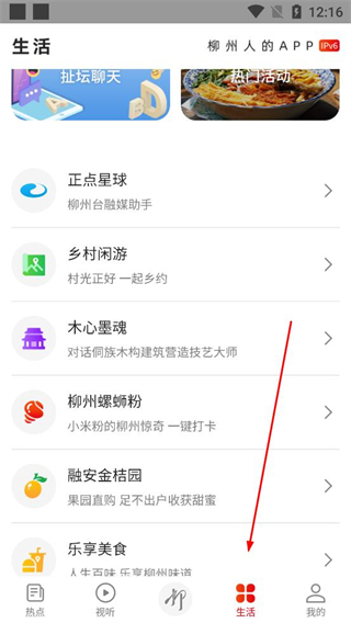 4、觀看完視頻后返回APP主界面,點擊底部導航欄的生活選項,進入生活頁面,瀏覽其中的各類服務與內容入口,體驗更多功能。