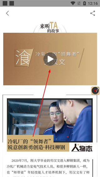3、進入視頻詳情頁后點擊播放按鈕開始觀看視頻,同時可查看視頻對應的文字介紹內容,了解視頻相關的人物與事件信息。