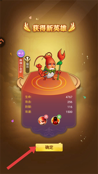 4、還會獲得新英雄,新英雄有各自的屬性和技能,點擊確定,就能讓新英雄加入戰斗,助力冒險。