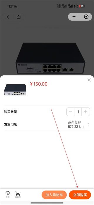 4、登錄成功后確認商品購買數量及發貨門店信息,再次點擊立即購買按鈕,可進入訂單確認頁面完成該商品的購買流程。